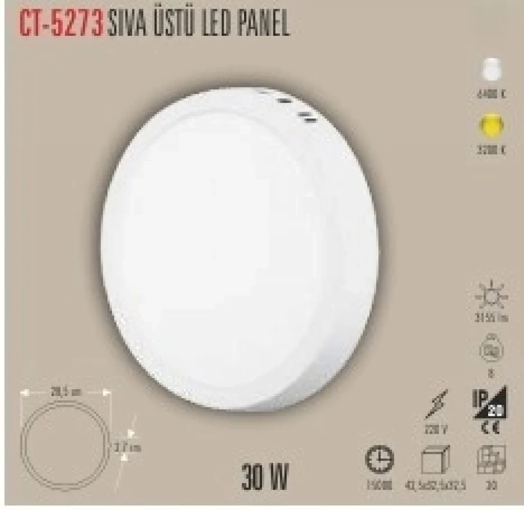 CT-5271 25W SIVA ÜSTÜ LED PANEL 2 IŞIK SEÇENEĞİ BEYAZ 6400K&GÜNIŞIĞI 3200K