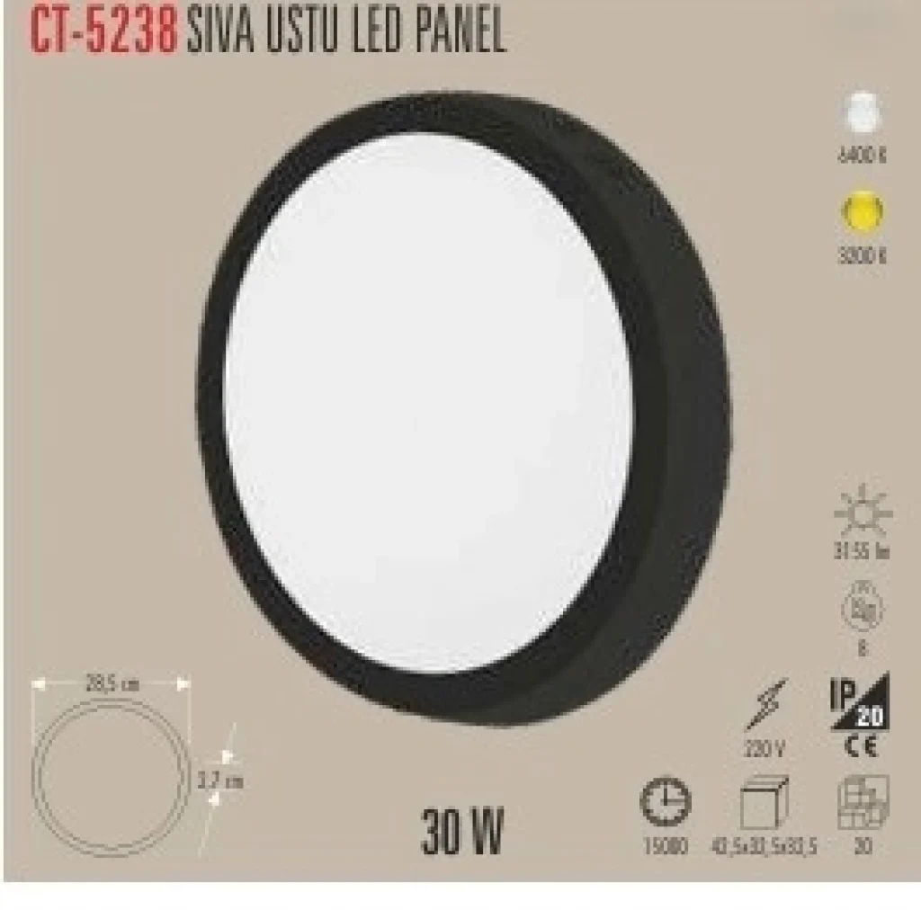 CATA 30W SIVA ÜSTÜ LED PANEL 2 IŞIK SEÇENEĞİ BEYAZ 6400K&GÜNIŞIĞI 3200K