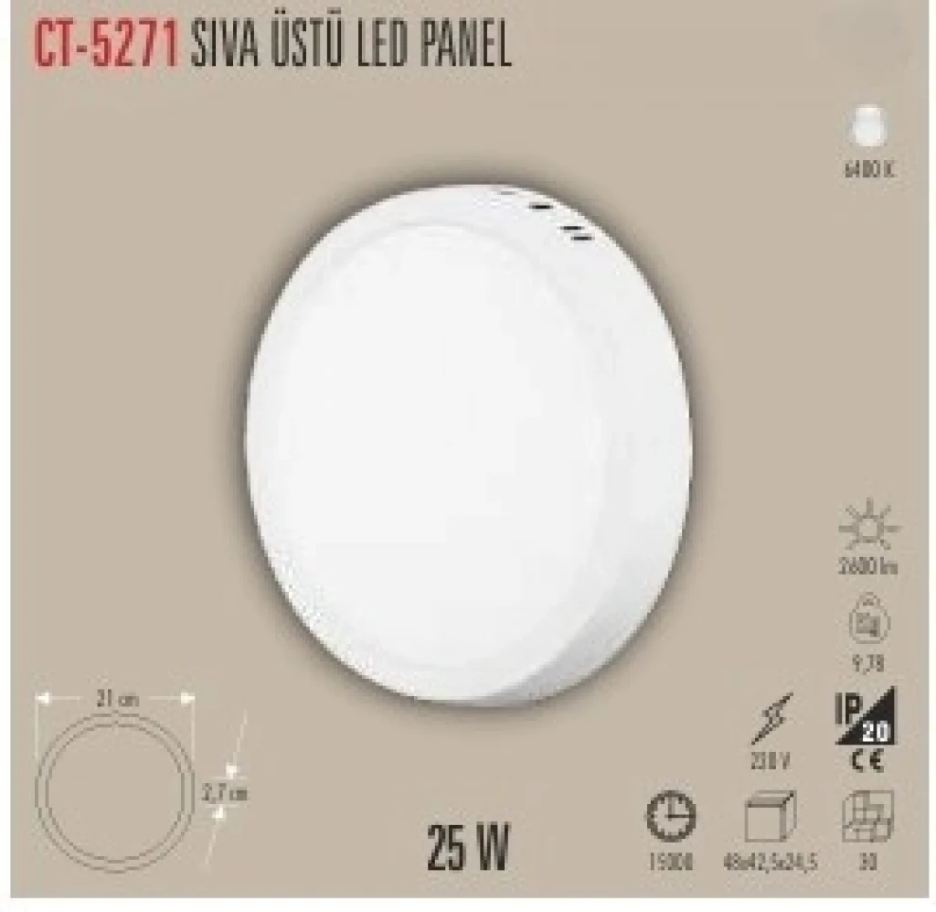 CT-5233 18W SIVA ÜSTÜ LED PANEL 2 IŞIK SEÇENEĞİ BEYAZ 6400K&GÜNIŞIĞI 3200K