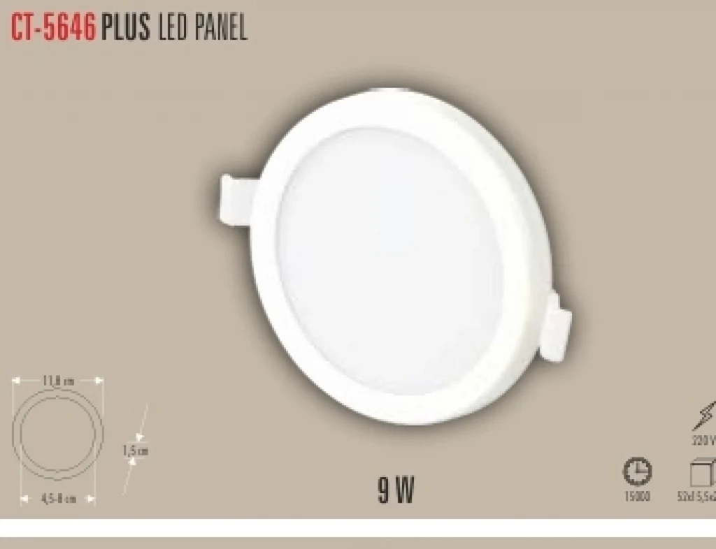 CT-5146 9W SLIM PANEL 2 IŞIK SEÇENEĞİ BEYAZ 6400K&GÜNIŞIĞI 3200K