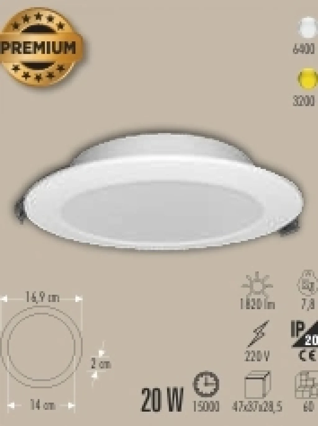 CT-5169 18 W SLIM PANEL 2 IŞIK SEÇENEĞİ BEYAZ 6400K&GÜNIŞIĞI 3200K